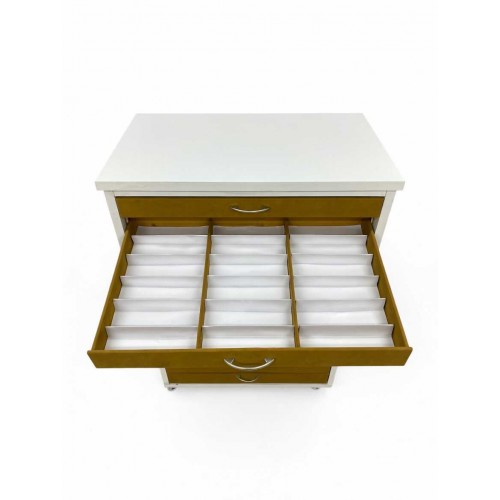 Dolap mdf’den üretilmekte olup, tekerlekli ve kumaş kaplamalı çekmeceleriyle sizlere hizmet etmesi için tasarlanmıştır.